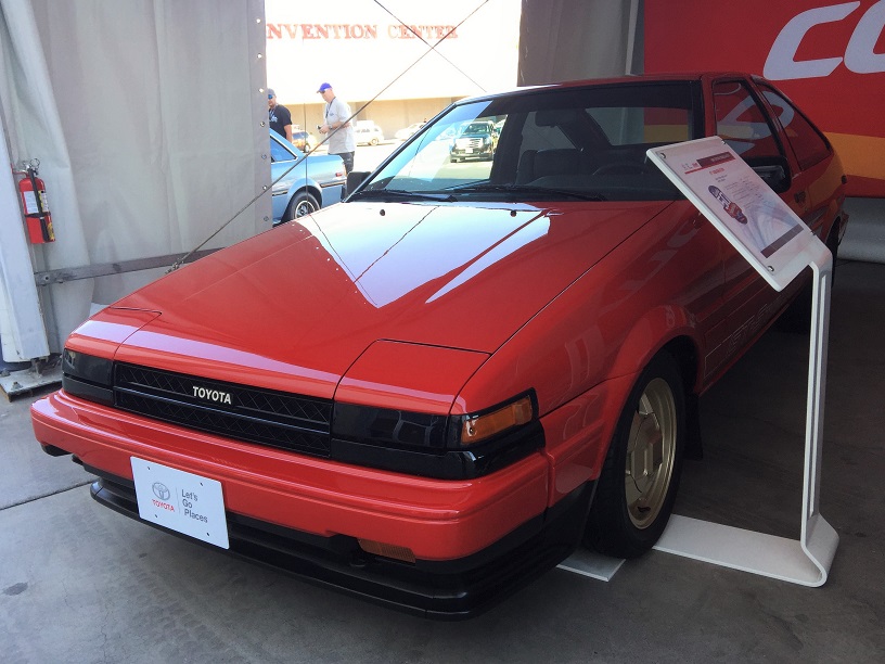 トヨタブースは昨年のSEMAショーと同じ位置にありましたが、そこから外に出られる出口があり、歴代カローラを展示していました。